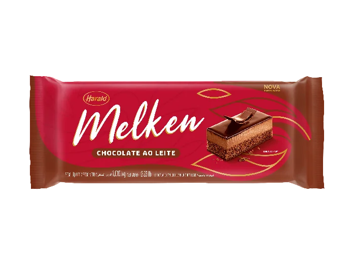Conteúdo da embalagem: 1 barra de chocolate Melken ao leite com 1,010kg.
