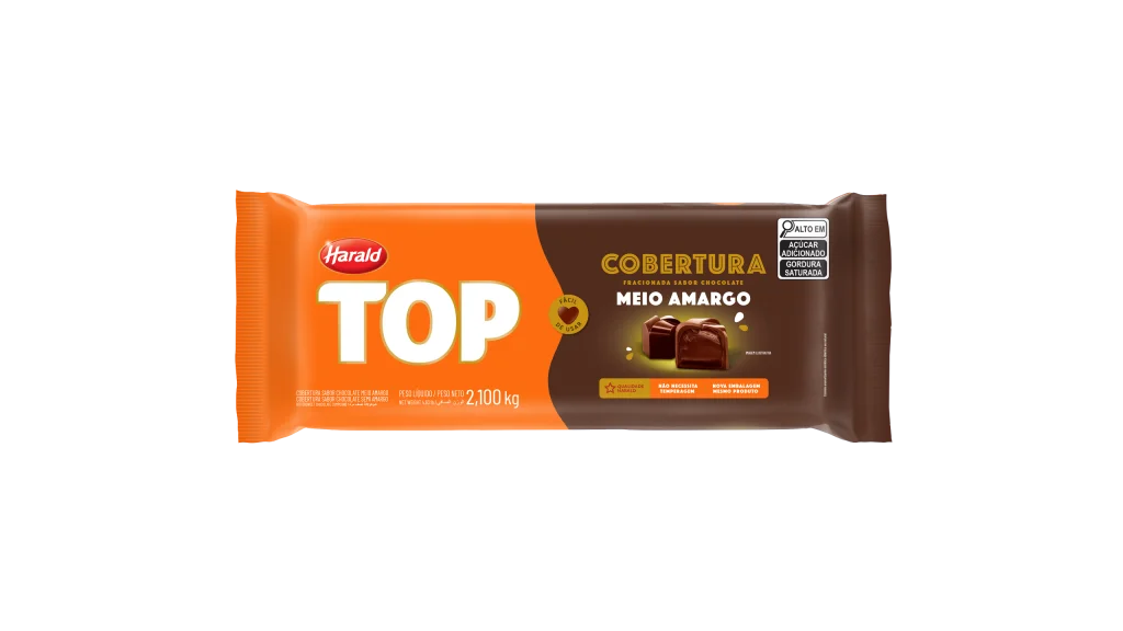 Cobertura de Chocolate Meio Amargo Top Harald 2,1kg Barra
